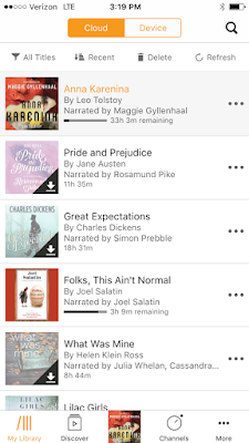 I don't even have to tell you that I downloaded all of them. Anna Karenina has been on my list for a looong time, and now I'm listening to the lovely Maggie Gyllenhaal reading it on my drive. I paid all of $1.99. Which is half of what it costs for a drink from Starbucks. It might cost even less than what it would cost me to drive to the library and check these out.
